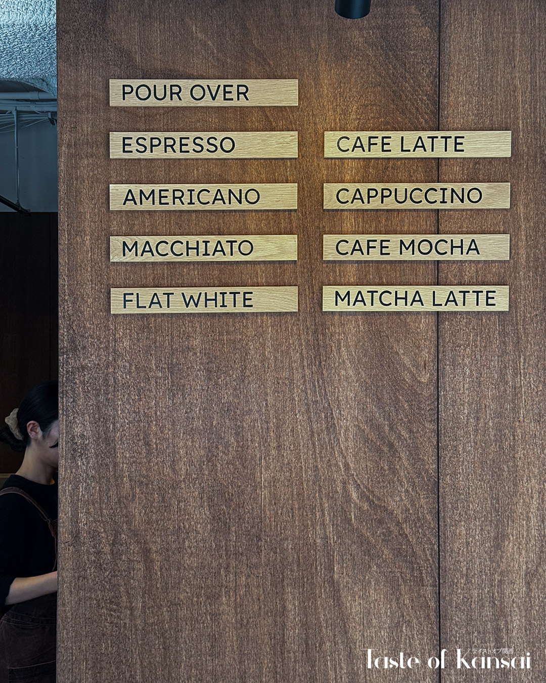 From the street, the café catches the eye with a generous glass frontage and a clean, modern façade. The open design allows daylight to pour in, revealing a bright, approachable space that invites passersby inside. The interior is notably spacious for central Namba, with seating arranged to comfortably accommodate both individuals and groups. Contemporary in style yet warm in tone, the layout emphasizes airiness and natural light—an ideal backdrop for lingering over a cup of specialty coffee.