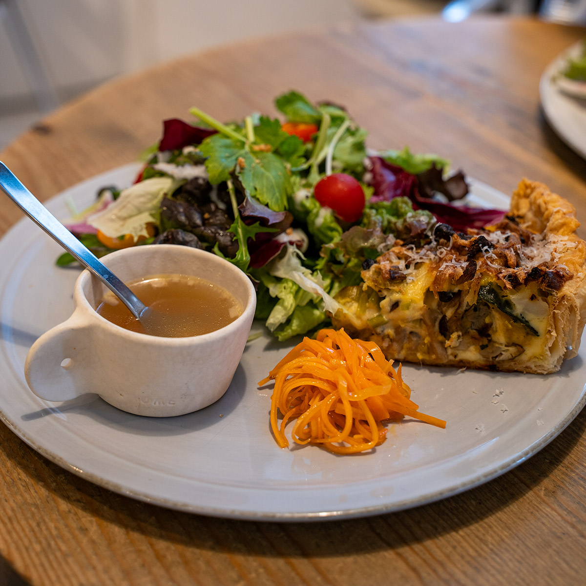 Fouet is mostly famous for it's sweets but it also has a proper lunch menu, as well as a large assortment of cookies for sale that you can bring home. Their main dish is a delicious quiche plate that comes (your choice) with or without a bagel. The plate comes with salad and pickled vegetables. They also sell a variety of toasts and cake or icecream.