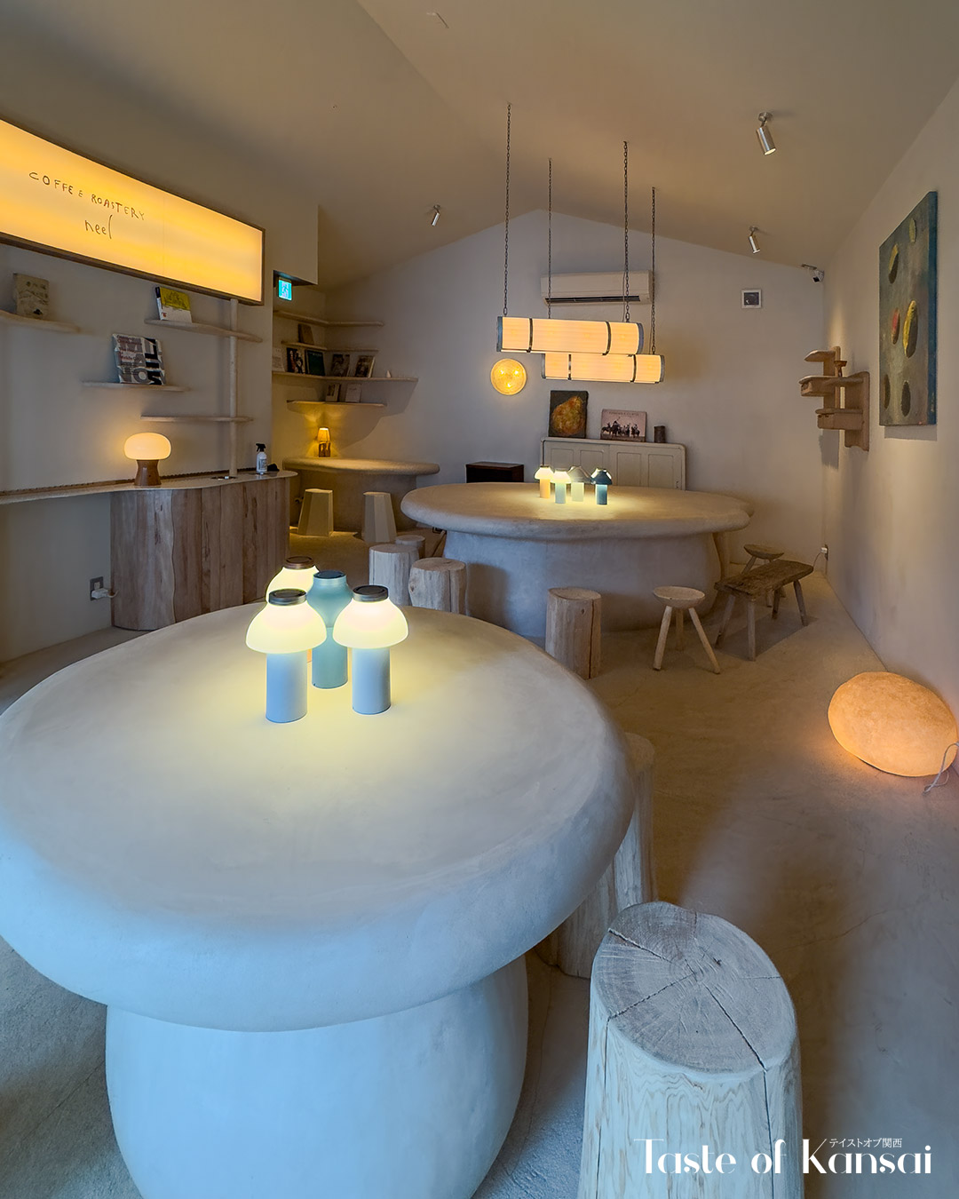 Coffee Roastery Neel Kitaumeda in Osaka presents itself as a compact, design-forward coffee concept that blends roasting with a café experience in Northa-Umeda. The cafe sits in the Kita ward, placing it within a short walk from Nakatsu Station  (exit 1) and other central Osaka transit nodes, making it accessible for morning visitors and urban explorers alike. The cafe’s branding and interior lean into a modern Japandi, industrial-meets-minimal aesthetic, featuring visible roasting equipment within the space that underscores its roastery identity, while the seating arrangement emphasizes a relaxed yet efficient cafe atmosphere. Externally, the storefront presents a unique mustard yellow colored, contemporary façade that signals a fresh, craft-focused coffee destination. The primary draw is the combination of in-house roasting and a curated coffee selection, attracting customers who value beans provenance and roast profiles alongside a quick, well-prepared cup.​