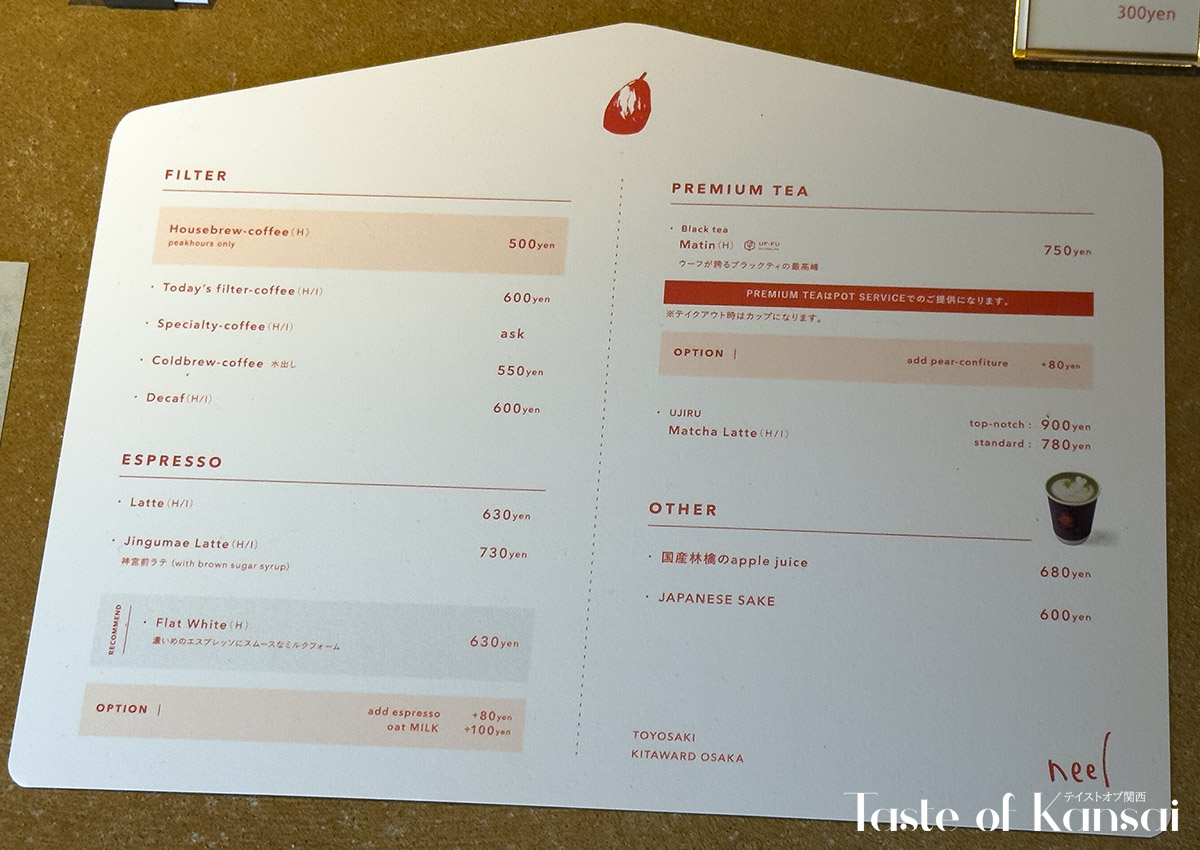 Neel’s menu blends Japanese sensibilities with European café culture. Centered around homemade brioche served with rich meat sauce, arugula, and soup, it also offers petite and seasonal brioche sets. Desserts highlight quality ingredients, featuring a signature matcha tiramisu with house-roasted matcha and mascarpone, alongside lemon pound cake, Basque cheesecake, and chocolate cake. The café serves expertly brewed coffee—from house blends and cold brew to espresso drinks like the Jingumae Latte and Flat White, plus premium teas, a refined Ujiru matcha latte, fresh apple juice, and even Japanese sake.