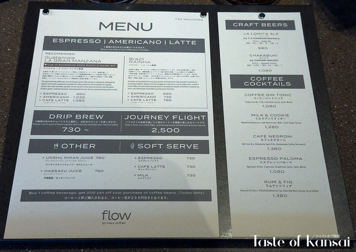 Flow by Nozy Coffee positions itself as a riverside hub where specialty coffee, design, and local culture intersect, rather than simply functioning as another Kyoto cafe. The combination of central yet riverfront location, interior and exterior that respond to the surrounding landscape, and a barista-led menu built around the Journey Flight format establishes a clear identity within Kyoto’s competitive coffee scene. With excellent coffee and food, welcoming staff who speak fluent English, a stylish interior, and river views, a visit to Flow By Nozy Coffee comes highly recommended.