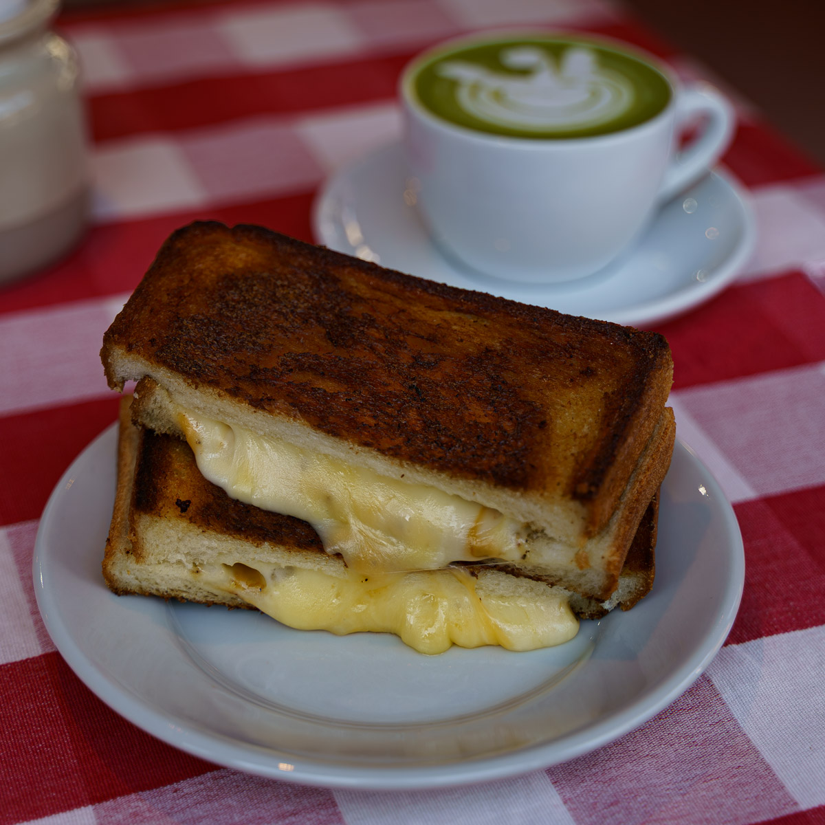 もちろん、本当の魅力は料理です。金段果実銀閣寺のメニューは、シンプルなカフェドリンクとボリューム満点のグリルサンドイッチが中心です。コーヒーは、トゥデイズコーヒー、アメリカーノ、カフェラテがあり、オーツミルクに変更することもできます。紅茶がお好きな方は、ホットまたはアイスの抹茶ラテをお選びいただけます。コーラ、ジンジャーエール、アップルジュース、オレンジジュースなどのソフトドリンクはおかわり自由で、アルコールがお好みの方にはハートランドビールもご用意しています。料理は、レッドチェダー、モントレージャック、ゴーダを使った定番のグリルチーズサンドイッチをはじめ、リンゴとポークリブ、玉ねぎ、チーズを組み合わせた、カフェの看板メニューであるリンゴをテーマにしたオリジナルサンドイッチ「金段果実」など、グリルサンドイッチが充実しています。