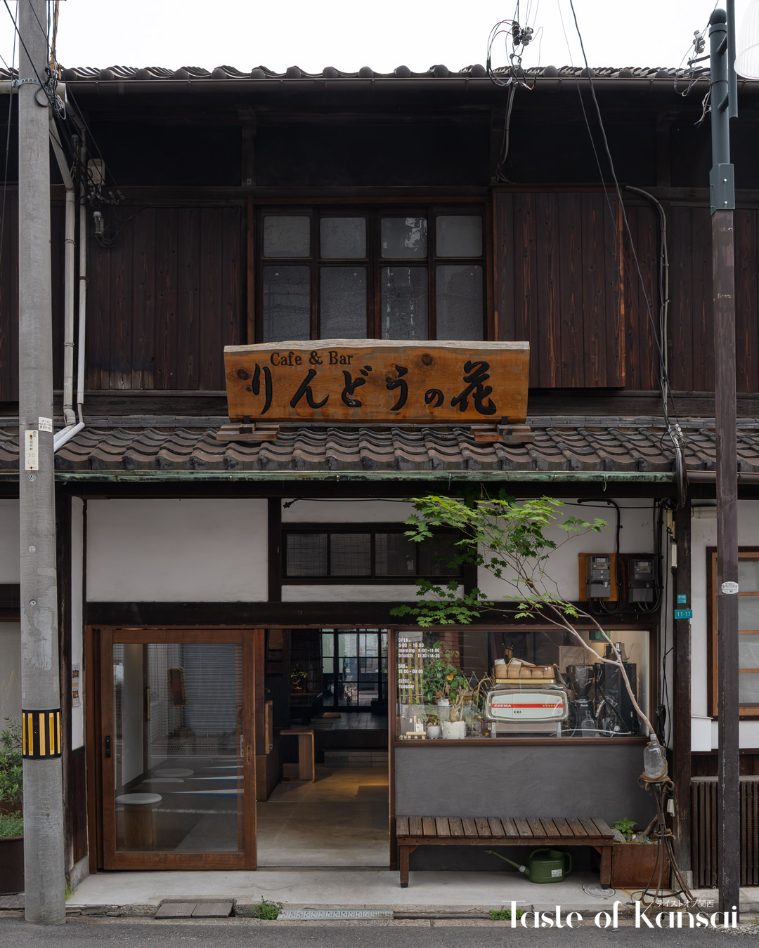 Located in South Osaka, "Rindo Coffee"  instagram.com/rindocoffee/ is a charming patisserie café bar that opened in April 2023. The café sits on a five-minute walk from the Hanwa Line - JR Minami-Tanabe Station and is housed in a renovated 100-year-old nagaya kominka. While mostly the front part of the building has been renovated, the rear remains largely untouched, creating a unique blend of modern and traditional Japanese interior styles. The façade features a wooden sign that says (りんどうの花) "Rindou no hana," which translates to "Gentian flower."