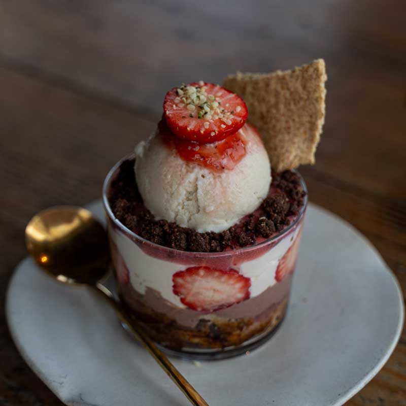 コノハさんが作るスイーツは、すべて植物由来で、どれも繊細で美しく盛り付けられています。窓際の席で、季節のお菓子とセイゴさん (instagram.com/kizukicoffee/) が淹れたコーヒーを味わえば、心が豊かになります。(訪問時のメニューは、「いちご豆腐ティラミス、季節のフルーツタルト、ミルクレープ、杏仁豆腐、いちごプリン」でした)。さまざまな味の組み合わせ、穏やかな雰囲気、そして外の景色を眺めるのは、本当に贅沢なひとときになります。静かな環境にもかかわらず、カフェには活気があり、細部にまで愛情と情熱が注がれています。住所は予約後、またはDMにて問い合わせをした際に教えてもらえるシステムで、訪れるたびに秘密の貴重な体験をしているように感じられます。