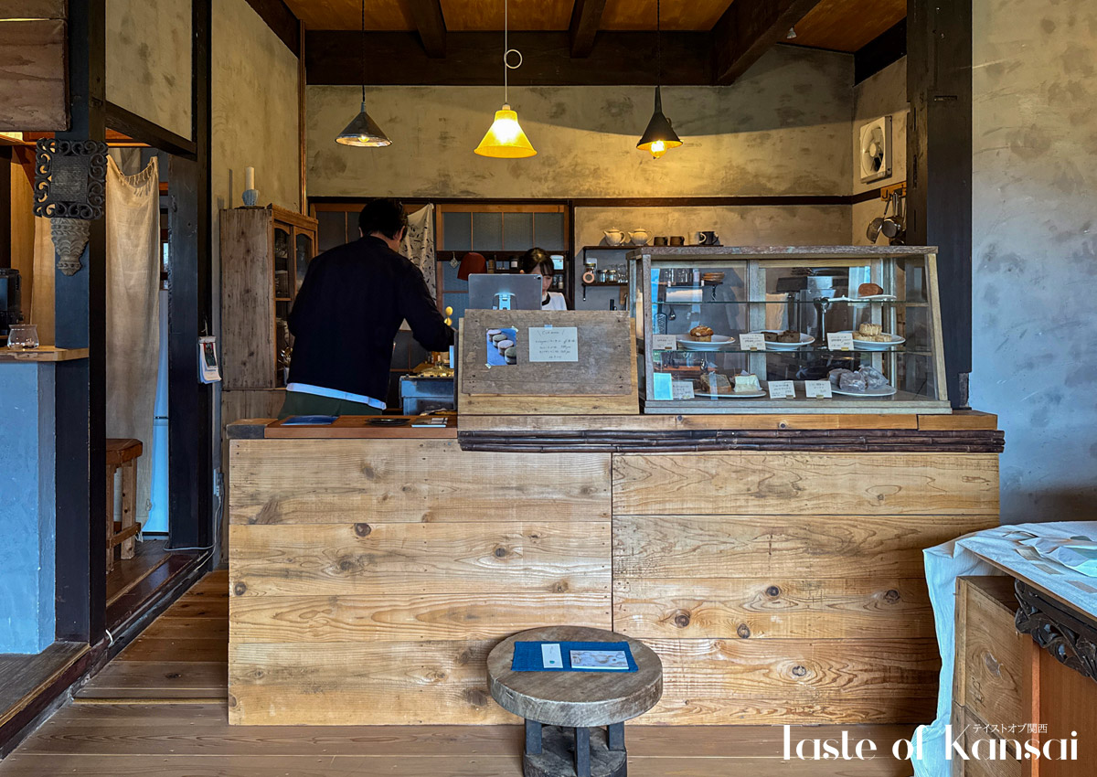 しきろいSottoのインテリアは洗練された古民家とラスティックスタイルの組み合わせで、温かみとノスタルジアが溢れる空間です。年月を経た木の骨組みと土壁が穏やかな雰囲気を醸し出し、古いものの中にある美を感じます。ペンダントライトの柔らかな光が空間に優しい居心地の良さを与えてくれます。絶妙に配置されたアンティーク家具、手作りの陶器、繊細な花のアクセントは、オーナー達のこだわりをうかがわせます。寒い日には、部屋の中央にある鋳鉄製の薪ストーブが柔らかな暖かさを放ち、カフェの雰囲気がさらに居心地よくなります。隅々までこだわりが見られる空間で、コーヒーと植物由来のスイーツを楽しみながら静かなひとときを味わえる、平和な隠れ家のような雰囲気が漂います。