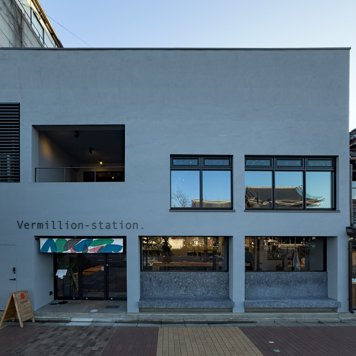Vermillion - station. (instagram.com/vermillion_espresso) is a Kyoto café complex that opened in September 2025, directly facing Higashi Honganji Temple and within about an 8-minute walk from Kyoto Station Exit 1 or 8 minute walk from Karasuma Line - Gojo Station exit 5. Conceived as a hybrid space for café service, Kyoto-themed souvenirs, and workshops, it is designed as a calm urban stopover for both travelers and local residents moving through the Kyoto Station area. The name “Vermillion” is shared with the brand’s original Fushimi Inari locations and refers to the vivid vermilion color of the shrine’s torii gates, tying this new branch to the visual identity of Kyoto’s most iconic religious site.